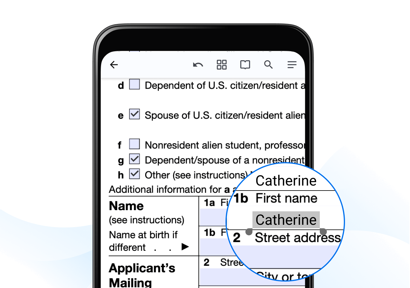 Complete form filling by clicking text fields and typing into texts. You can also tick checkboxes and radio buttons to make a selection.