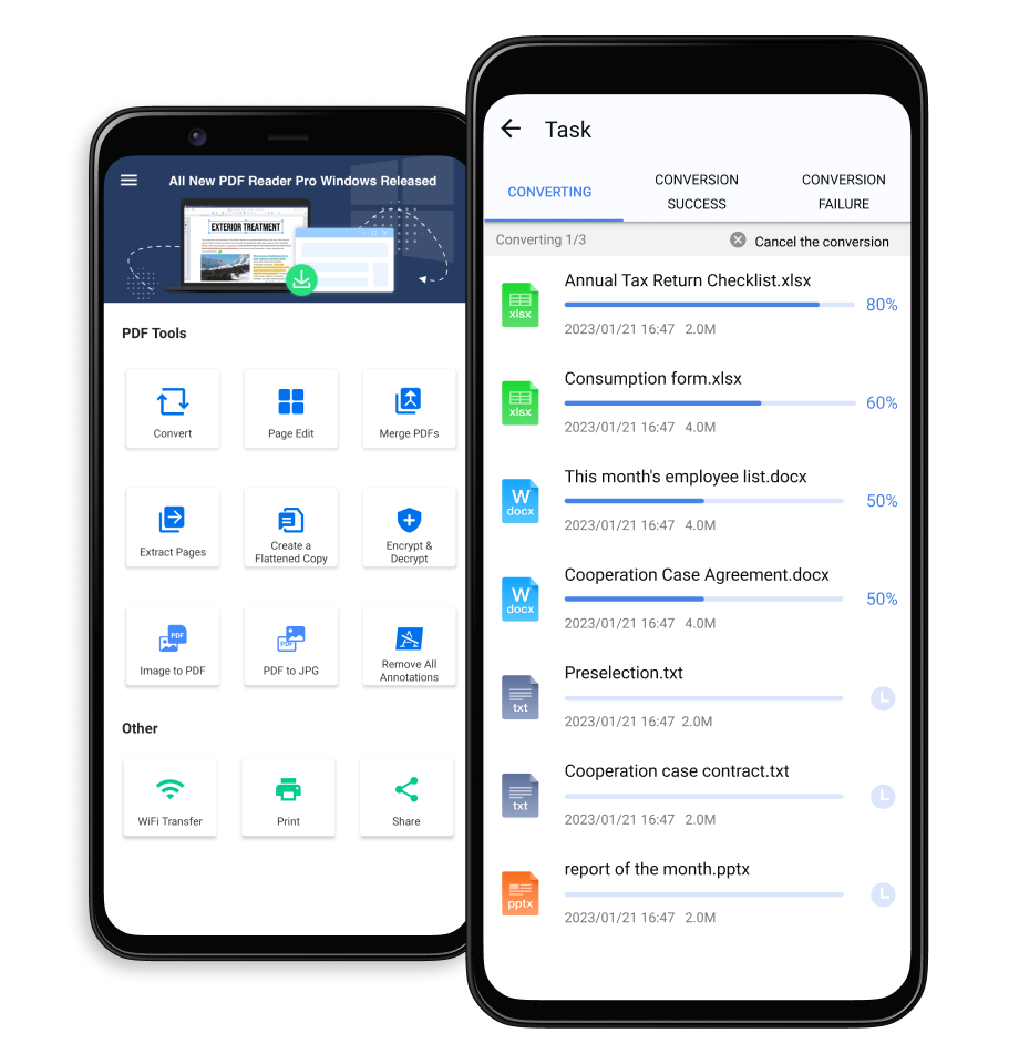 PDF Reader Pro is the ultimate PDF converter to convert PDFs to Word, Excel, PPT, TXT and JPG on the go. With it, you can enjoy the advanced working experience that meets all your needs.