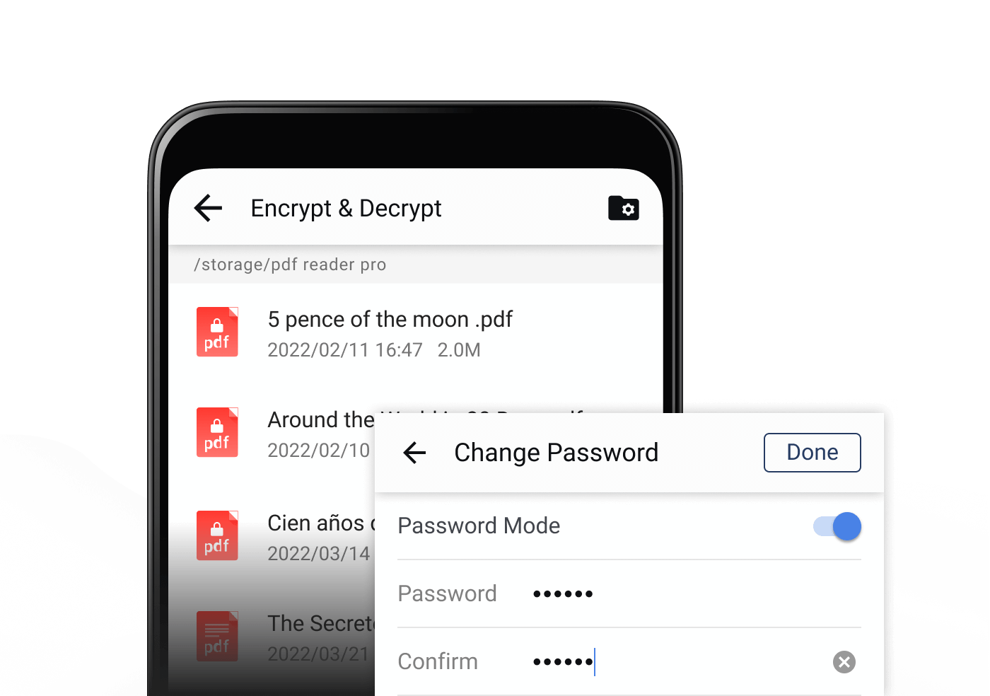 Securely protect your PDF files by setting a password to avoid unwanted viewers. Likewise, removing password from a encrypted document is supported for handy use.
