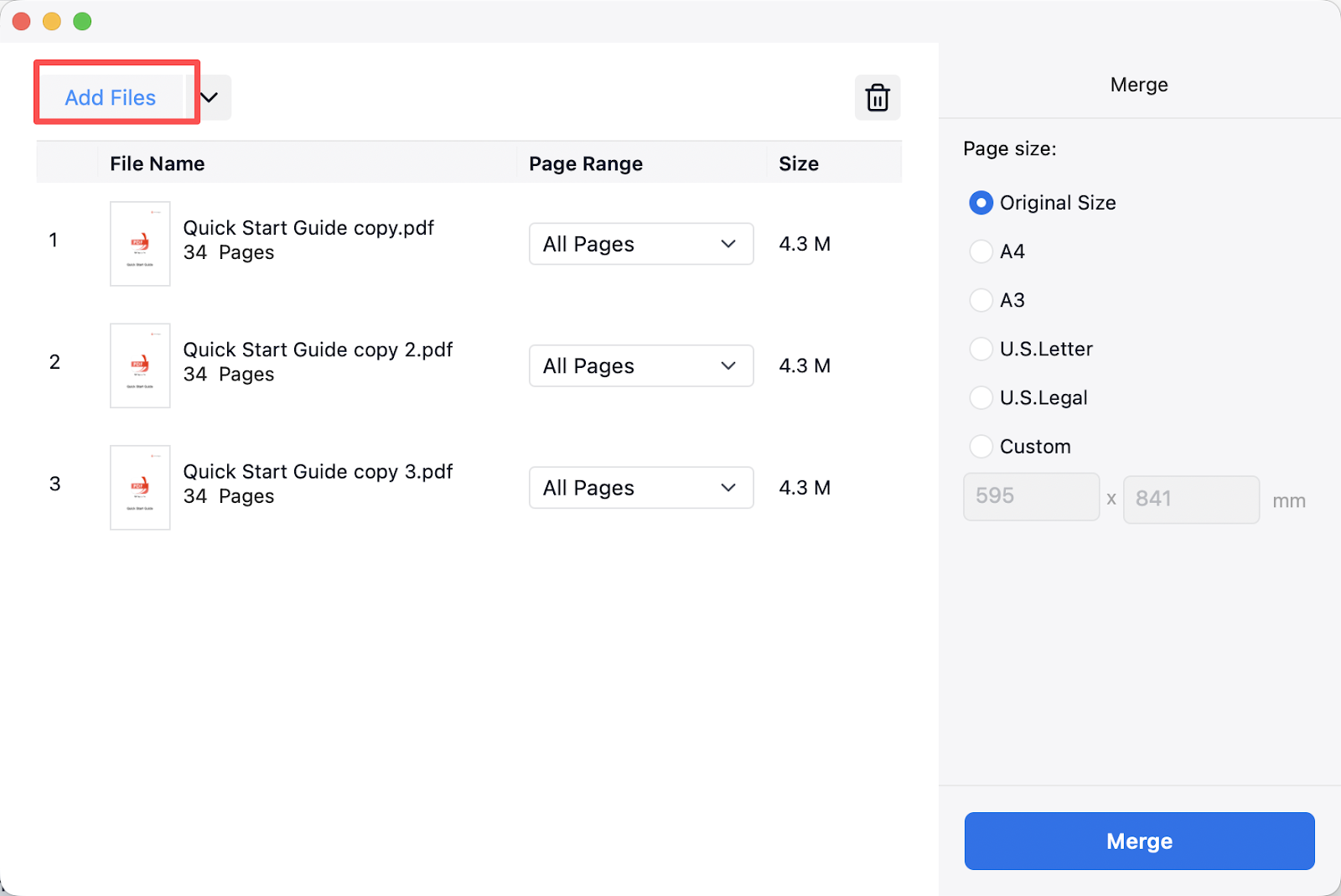 Step 3: Click Add Files in the upper-left corner to add all the files you need to print.