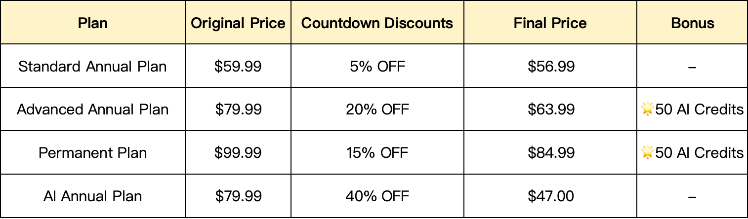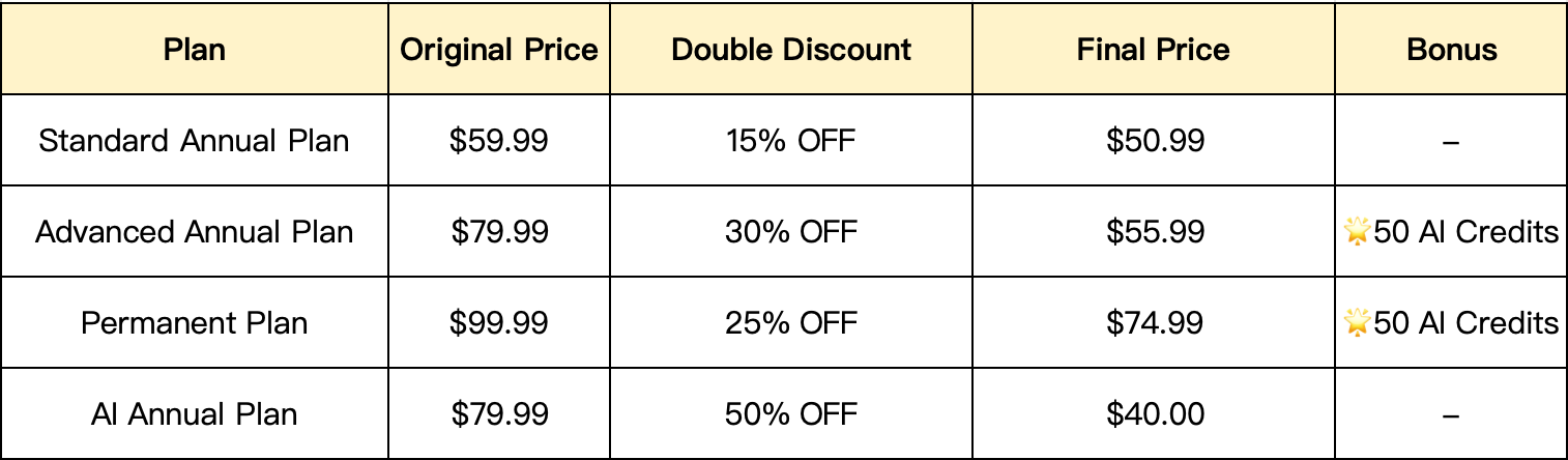 🎉Surprise! Now, during the Black Friday promotion, you can subscribe to annual AI features for just $40.