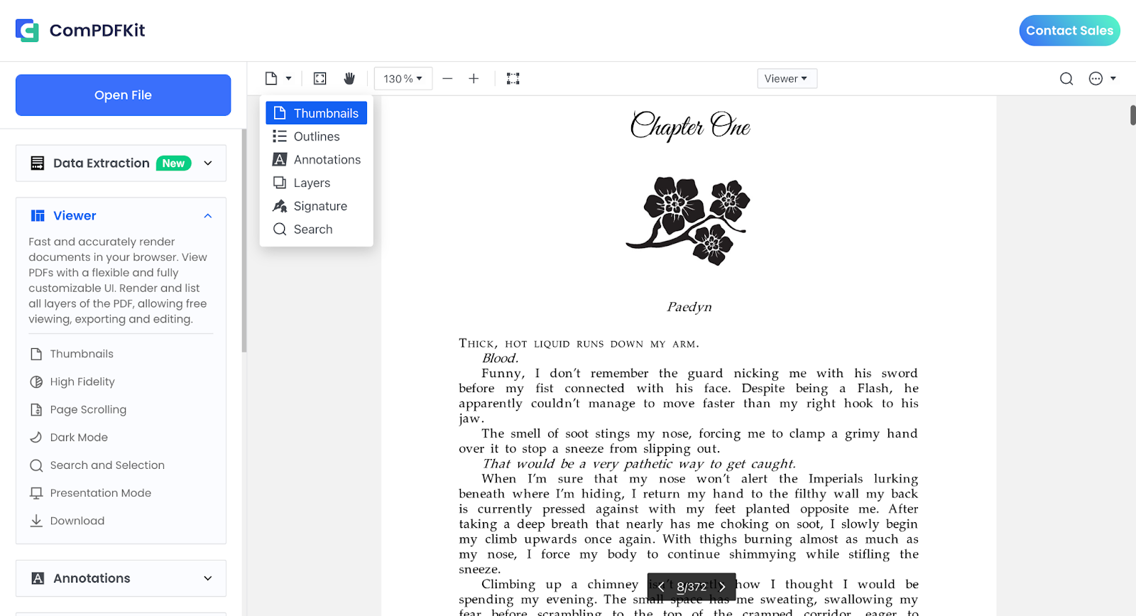 ComPDF Web Demo is a completely free PDF reader online with no limitations. It includes a PDF Kit that makes it easy for developers to integrate PDF viewing into their own applications.