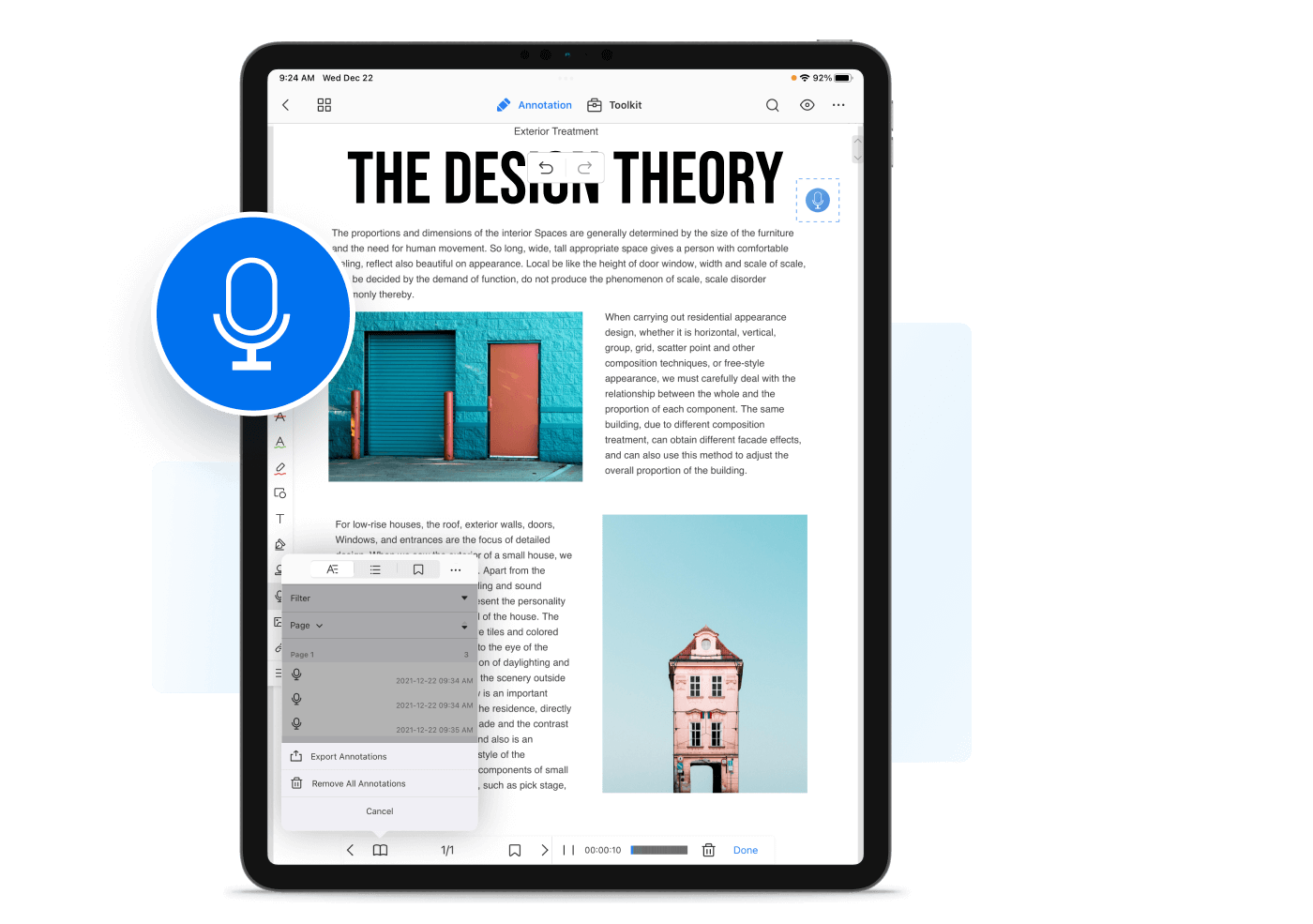 PDF Reader Pro for iPhone & iPad is proud to have the audio notes feature embedded. It supports you to record and playback sound annotations at any point in the PDF file.