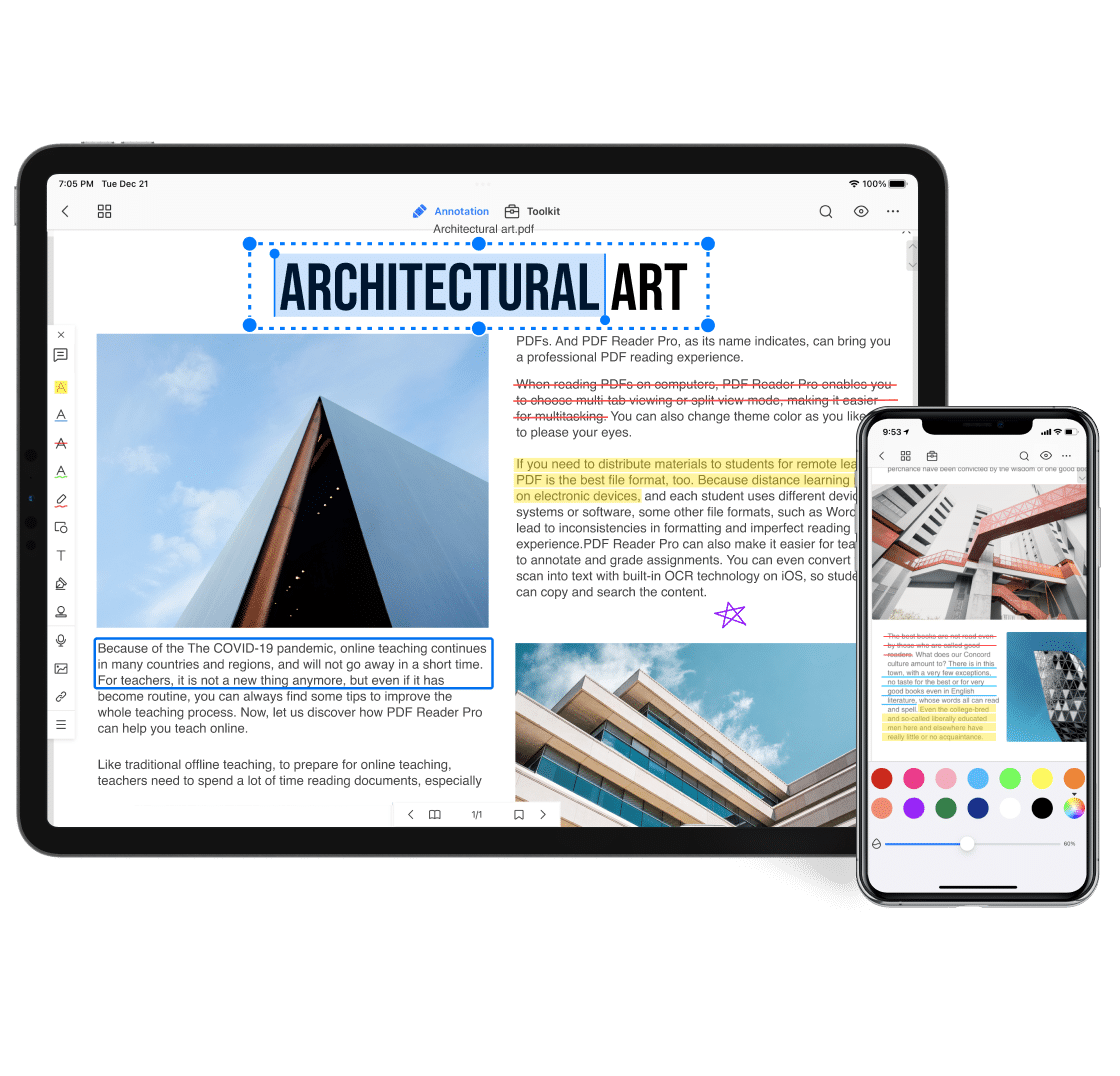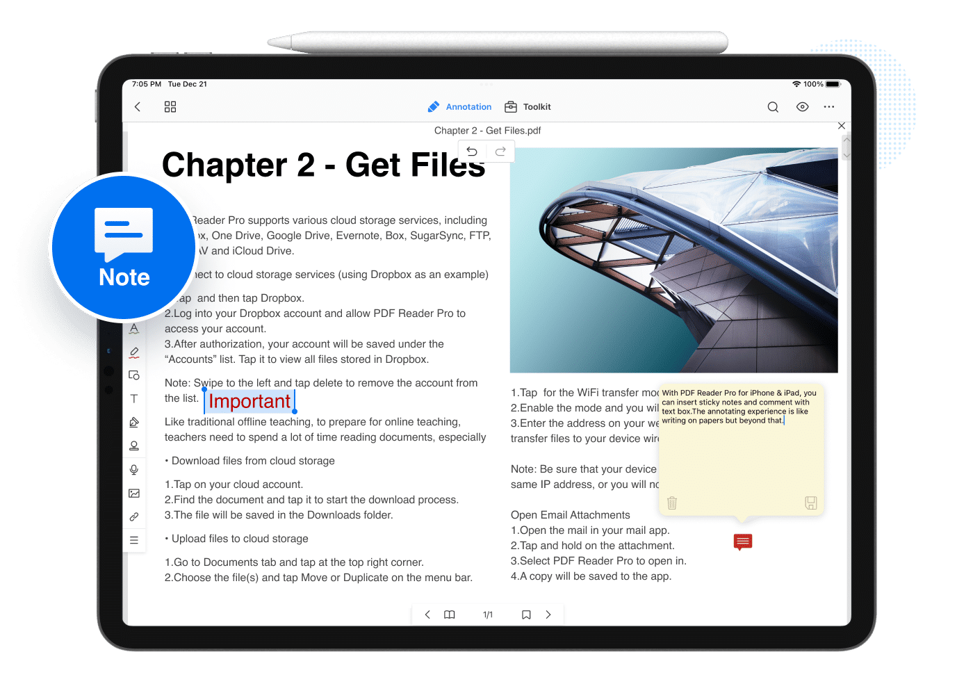 With PDF Reader Pro for iPhone & iPad, you can insert sticky notes and comment with text box. Apple Pencil is supported. The annotating experience is like writing on papers but beyond that.