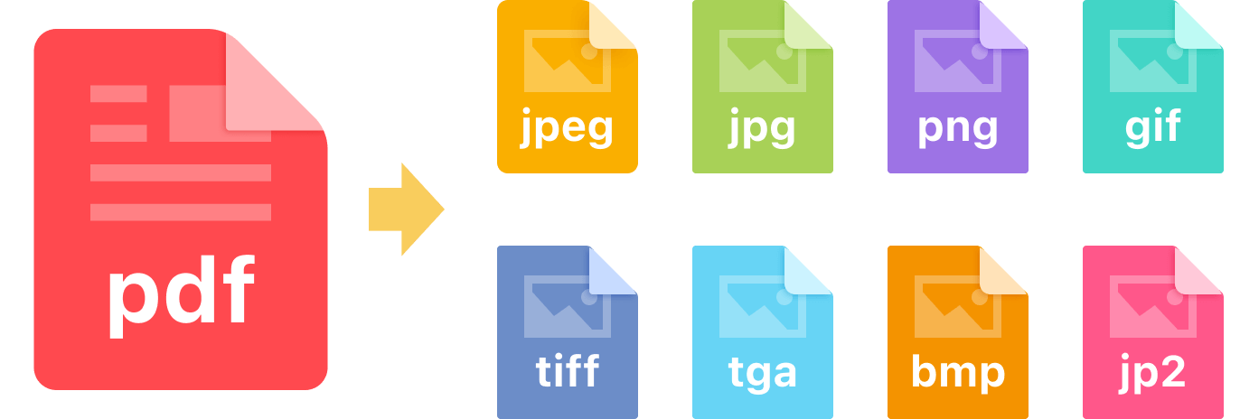 Allow a few seconds to turn your PDF pages into high-quality images. All image quality and resolution will remain intact. No file size limit nor registration is required. It supports JPG, PNG, GIF, TIFF, TGA, BMP, JP2.
