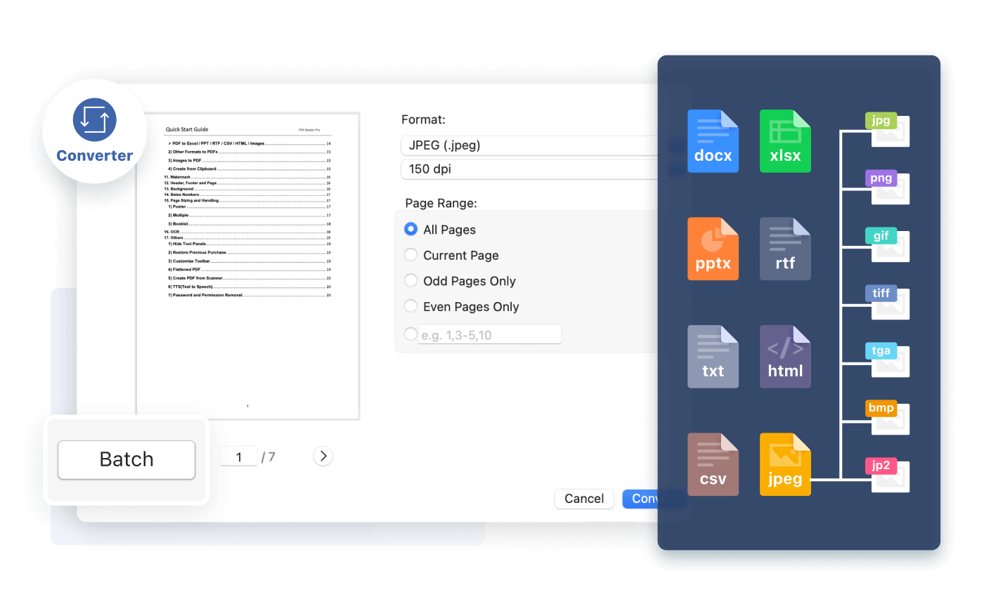 Smartly convert other formats like Word or Pages to PDFs with requirements of Microsoft Word or Pages to be installed on your Mac. PDF Reader Pro also enables to convert web pages to PDF.