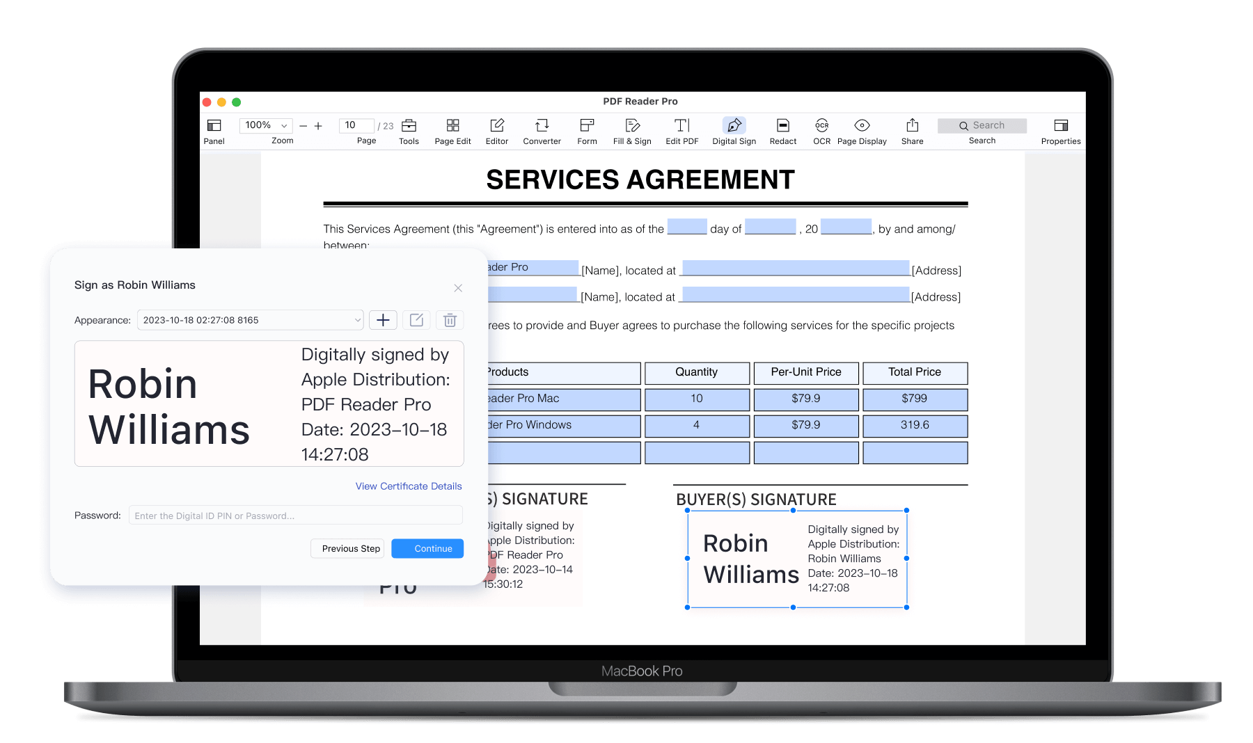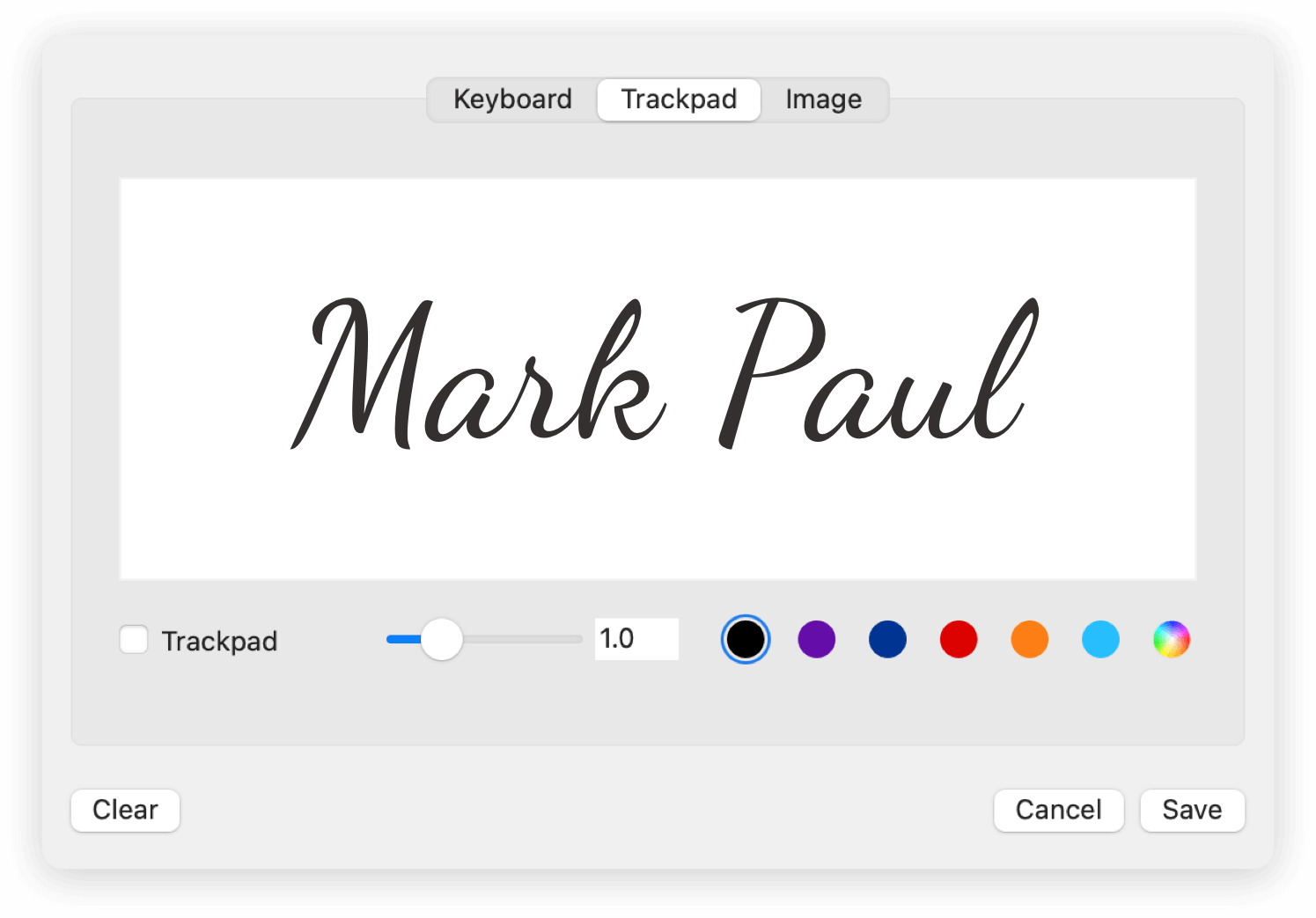 PDF signer supports you to create your own signatures by keyboard, MacBook's trackpad, or Images. Signing PDFs couldn’t be easier on your Mac.