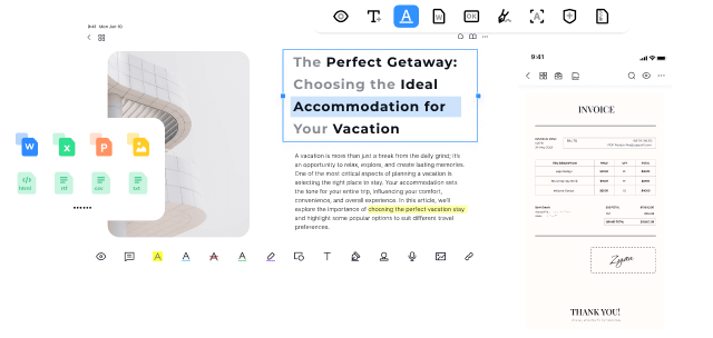 Edite texto em um PDF com a mesma formatação. Modifique facilmente as propriedades do texto ou alinhe os campos de texto.