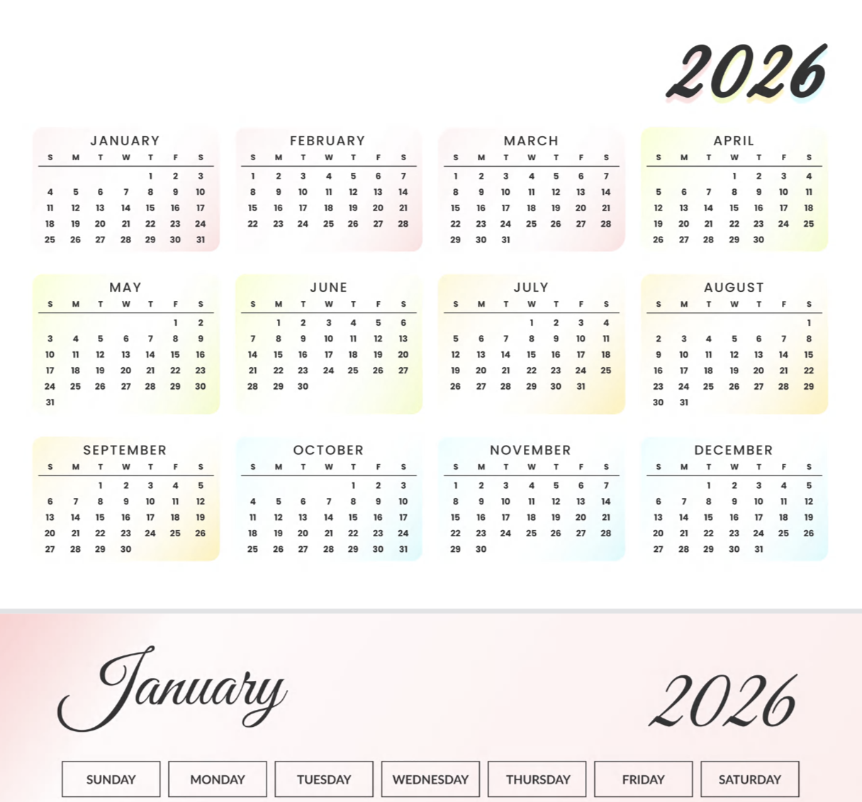 To help you begin the year with clarity, we offer a free, printable 2026 calendar designed for easy planning and everyday use. This clean and practical pdf calendar gives you a full overview of the year while letting you focus on each month in detail. Simply download, print, and start planning your year ahead!