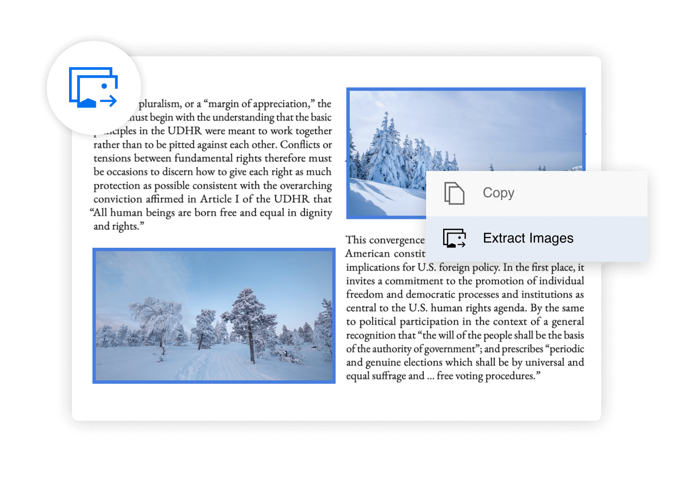 Shake off the tedious manual screenshots! Retain the high resolution of images saved in a PDF, and extract them as separate JPG files at ease. Learn how to extract images from PDF with PDF Reader Pro to post or share online.
