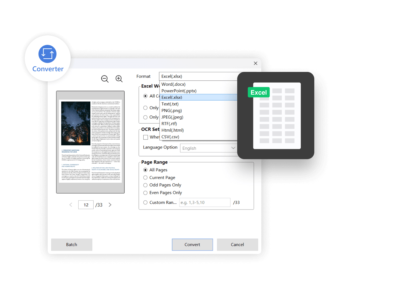 PDF Reader Pro is the best PDF converter for your file conversion needs, whether you need to turn a PDF into a Word, Excel sheet, PowerPoint, Text, RTF or even PNG or JPEG file.