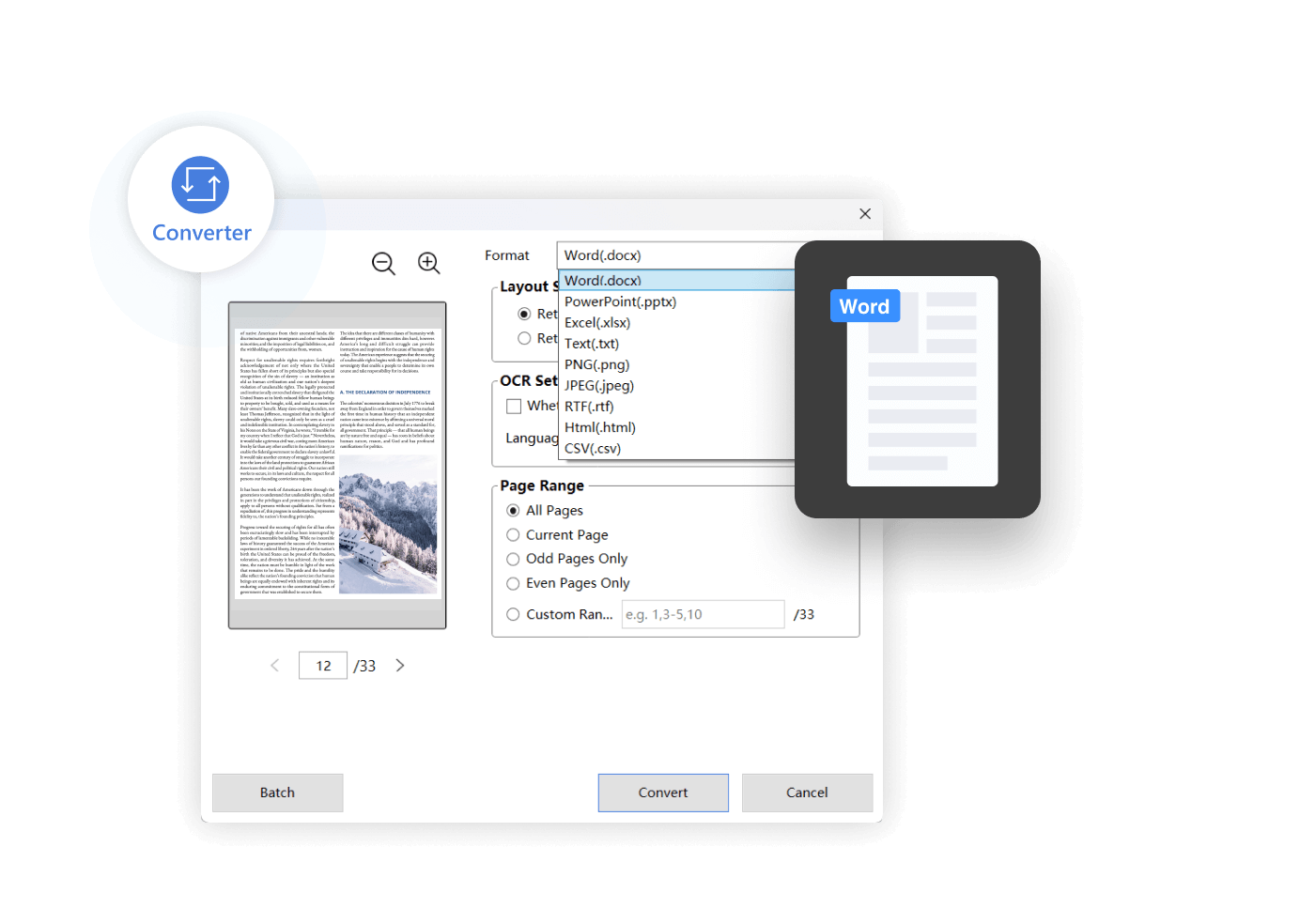 Magically convert PDFs to editable Word files. All elements can be kept, including bullets and tables, so that you can easily update your files contents.