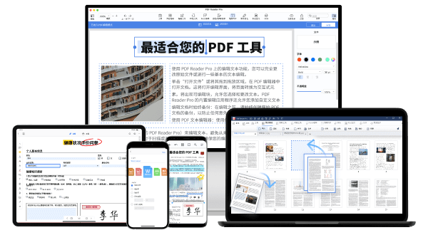 PDF Reader Pro最佳 Adobe® Acrobat® 替代品,提供编辑、转换、注释、表单创建、OCR、文档管理、加密、 文档权限管理、密文标记等强大功能。其用户友好的界面和强大的功能可以轻松应对用户日常的PDF处理需求。