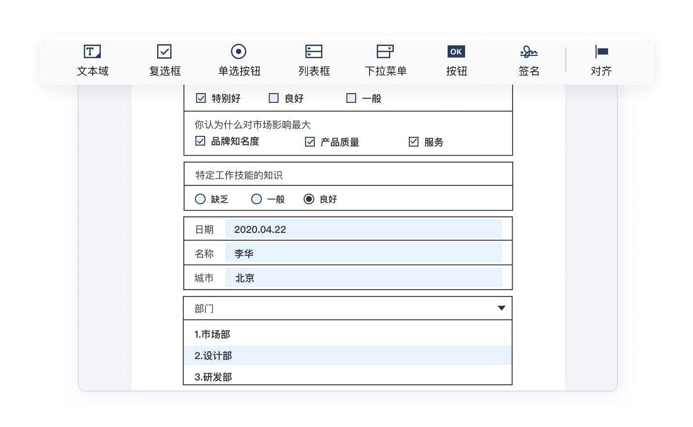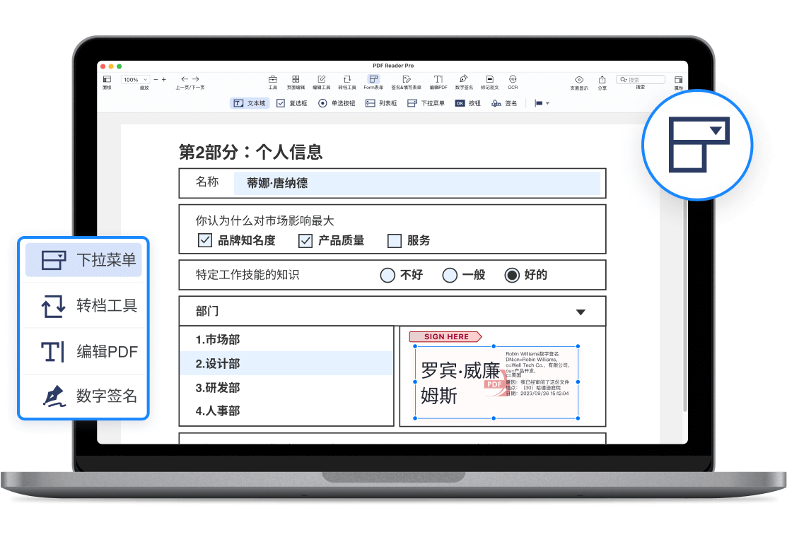 使用 PDF Reader Pro 轻松直接在 PDF 中创建和填写表格,如税务表单、商业计划、业务沟通书等。