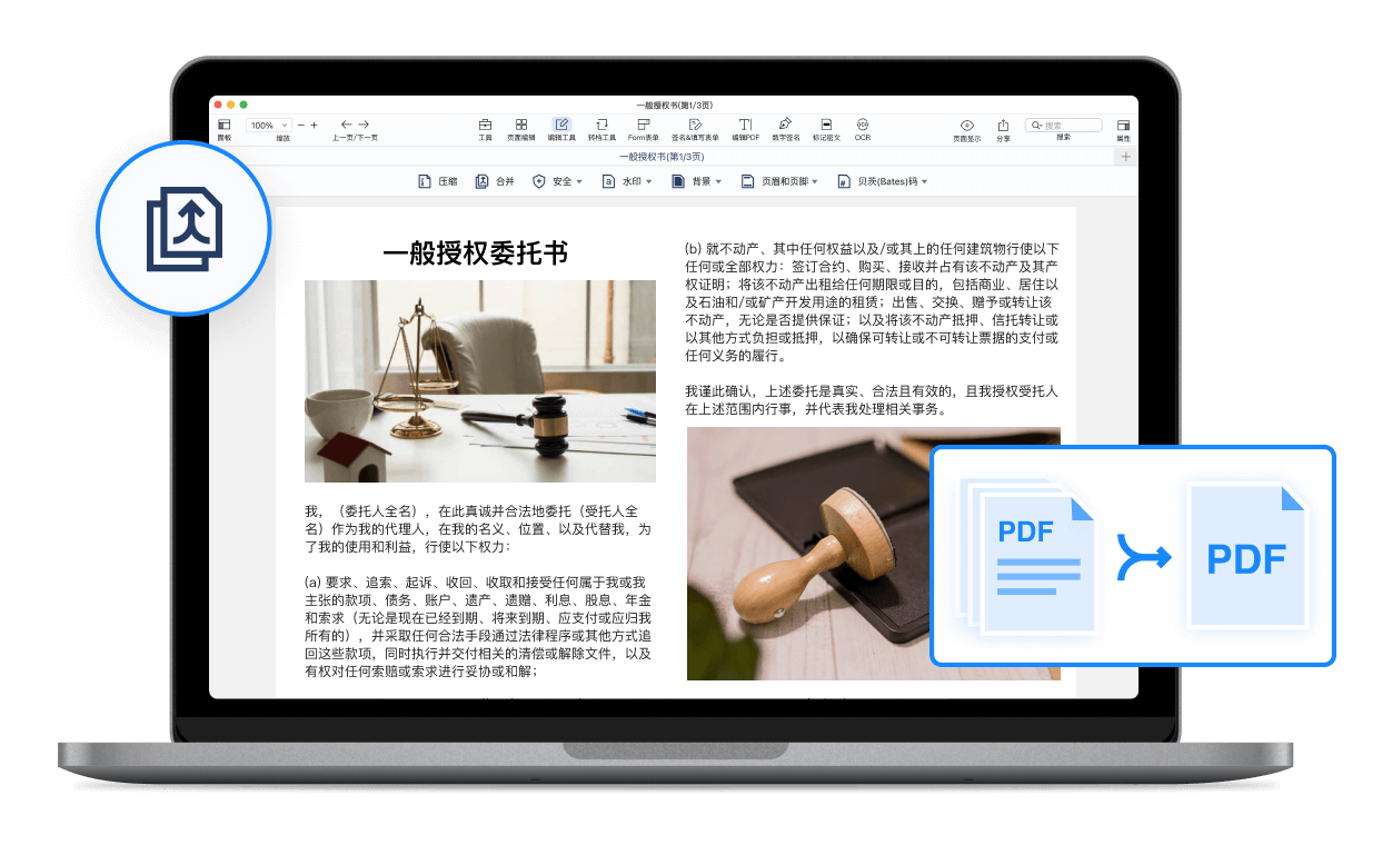 简化工作流程、编辑文件、保护文件安全并减少法律文件大小,使用 PDF Reader Pro 处理。