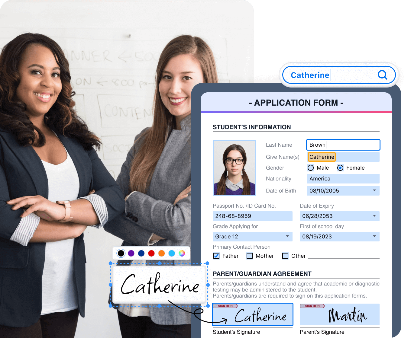 使用安全的電子簽名更快完成表格和文件(如學生註冊、錄取和入職),以節省各方的時間。