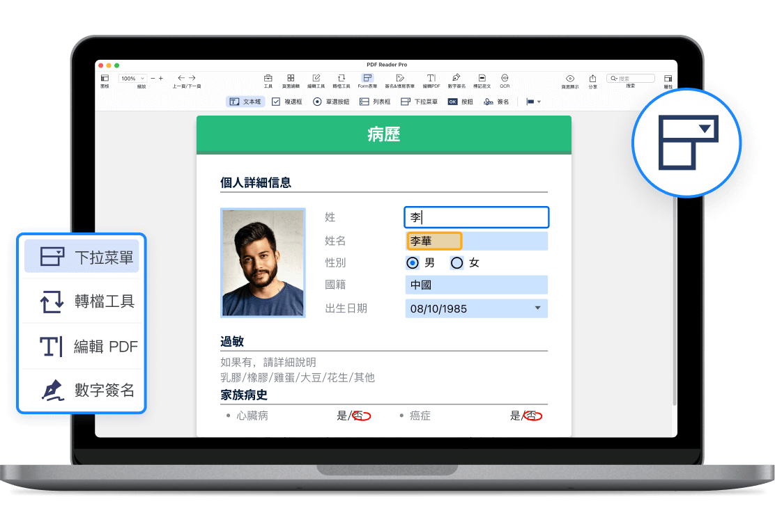 PDF Reader Pro 提供醫護人員更輕鬆、更快速、更安全地管理病患醫療表格的搜集和儲存。