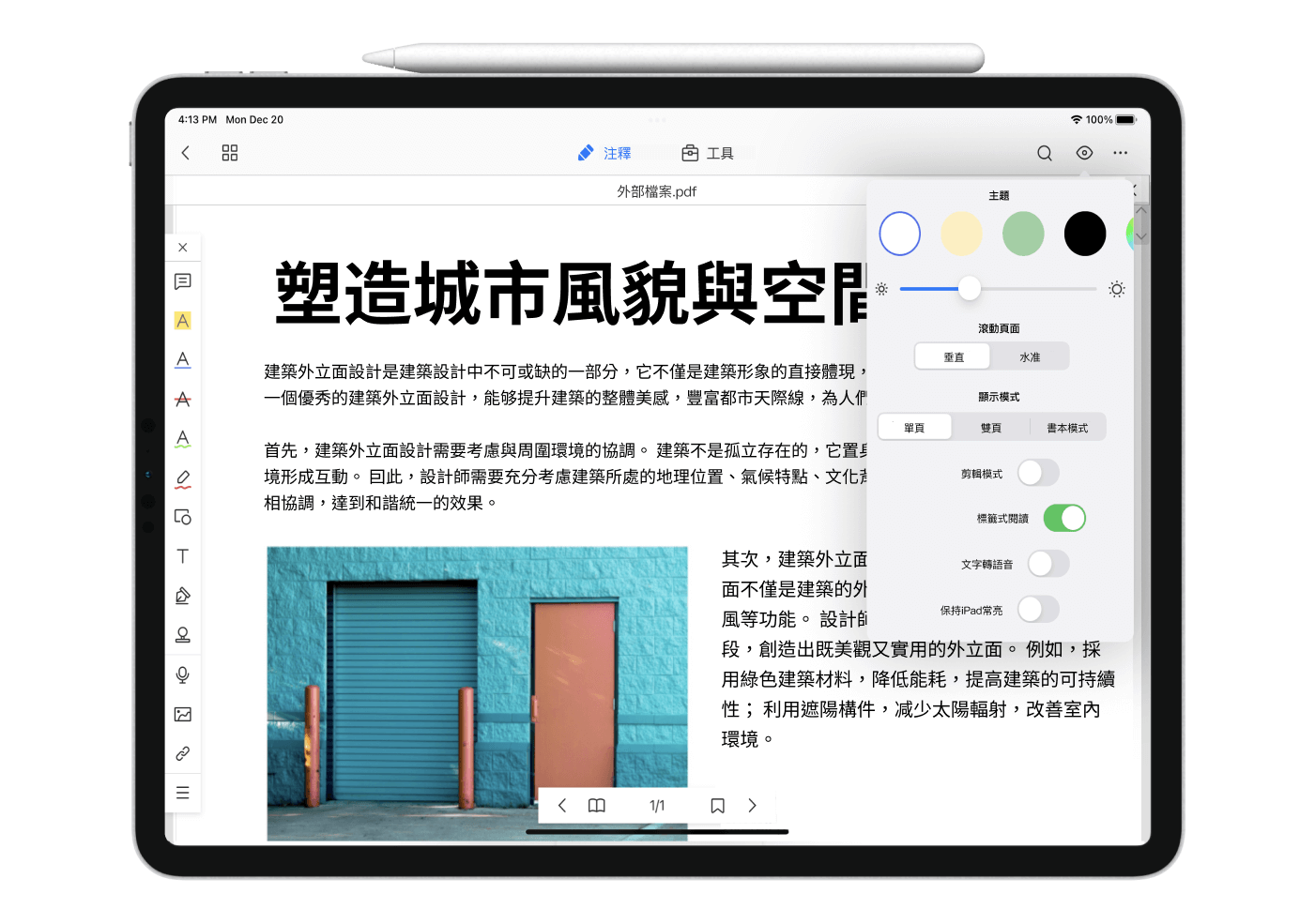 適用於 iPhone 和 iPad 的最佳 PDF 閱讀器,讓您隨時隨地查看 PDF。 在日間、夜間或棕褐色模式之間切換,讓您在閱讀或做筆記時在不同的情況下適當放鬆您的眼睛。